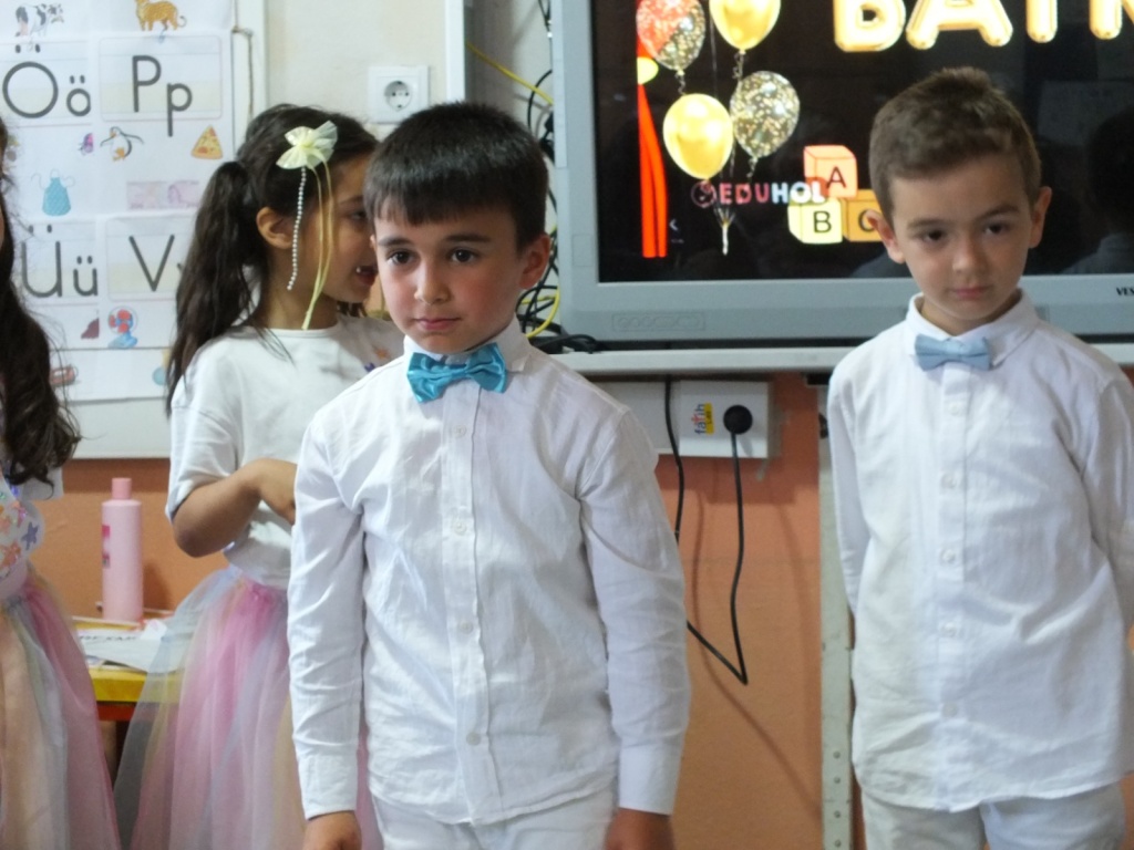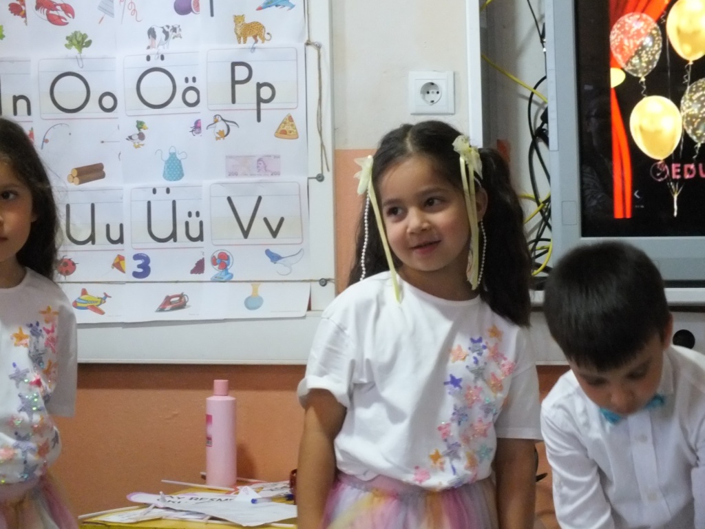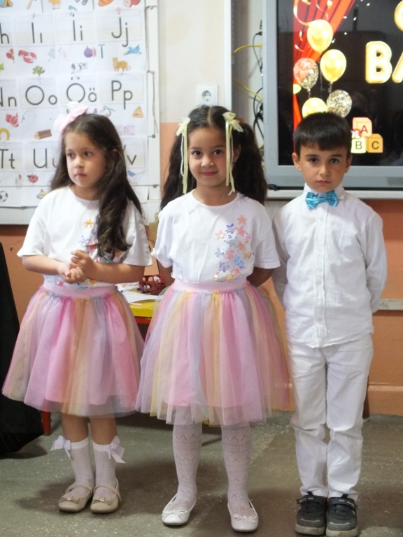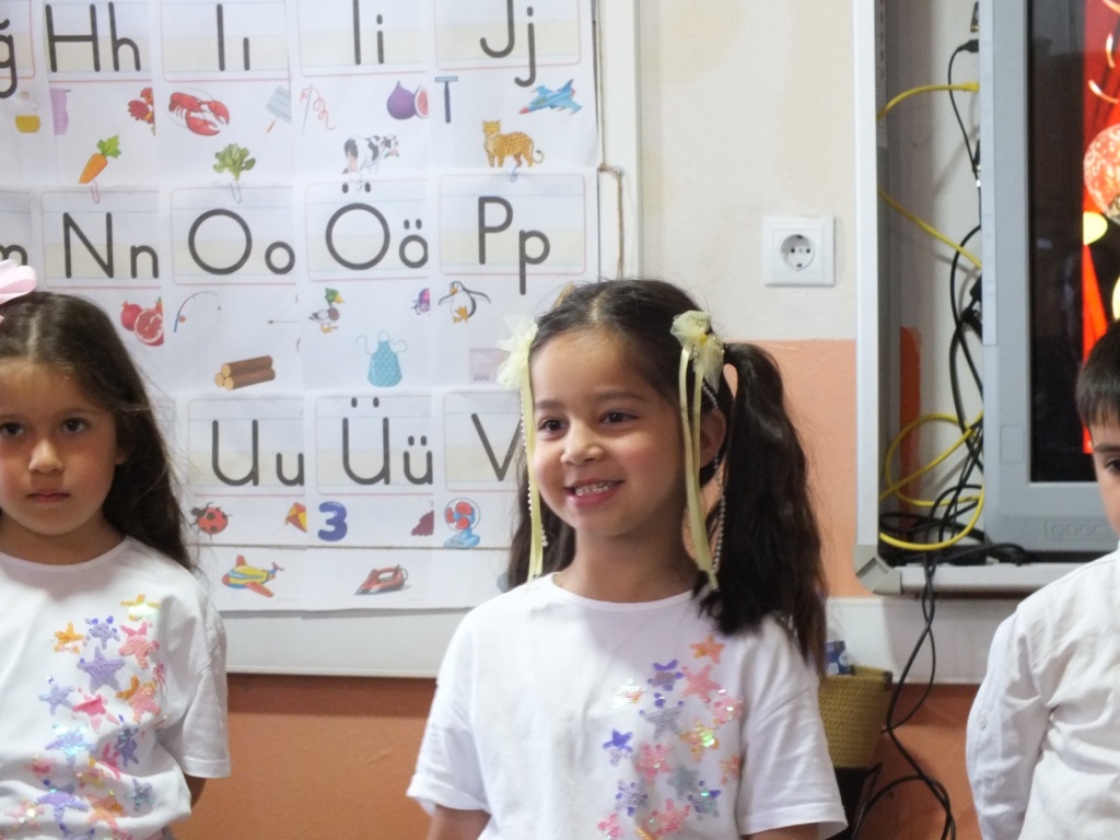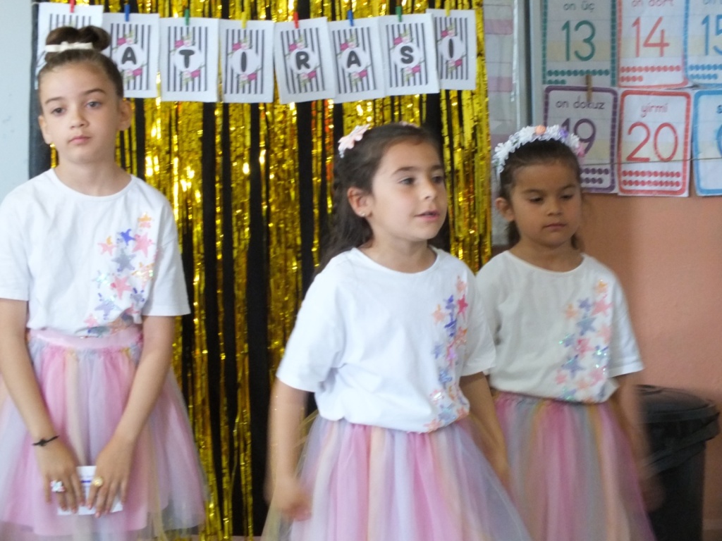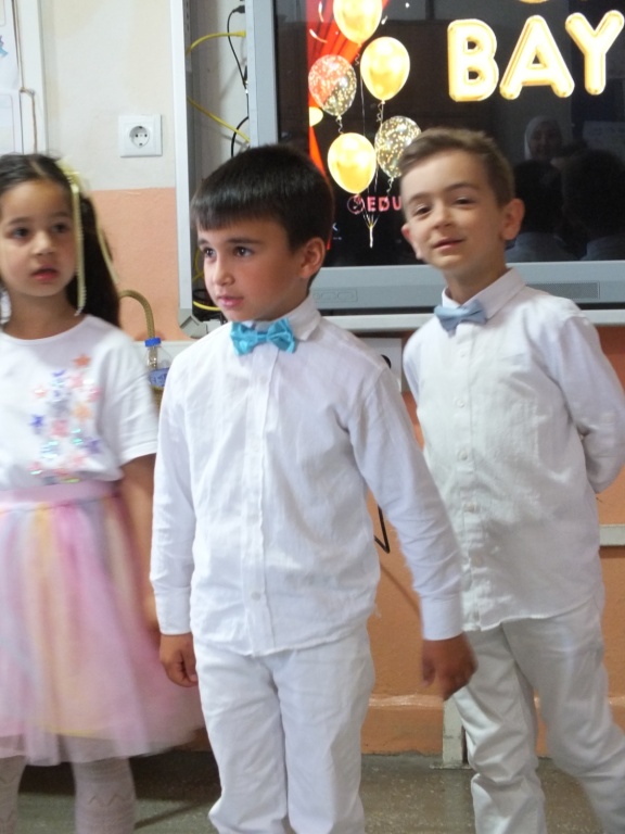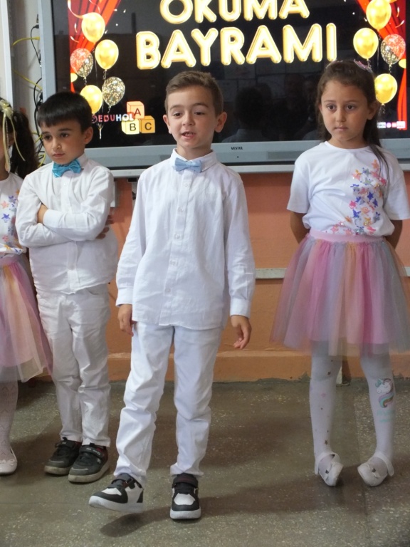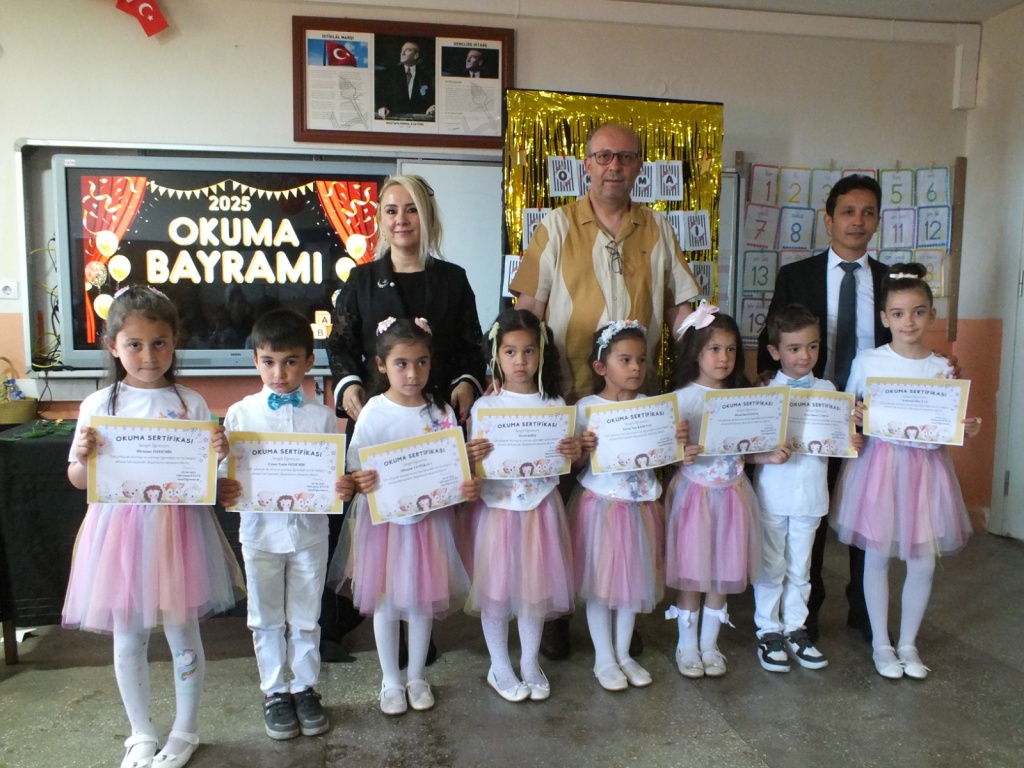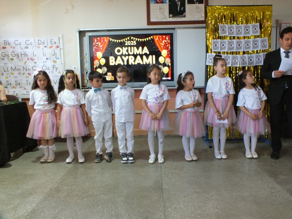 Bayadı İlkokulu 1/A sınıfı öğrencileri, sınıf öğretmenleri Süleyman Küçük rehberliğinde yıl boyunca öğrendiklerini coşkulu bir “Okuma Bayramı” ile taçlandırdı. Sunuculuğunu okulumuz Teknoloji ve Tasarım Öğretmeni Sayın Derya Özgenç’in yaptığı programda minik öğrencilerimiz, ezberledikleri şiirleri seslendirip sahneledikleri çeşitli gösterilerle izleyenlere duygu dolu anlar yaşattı.