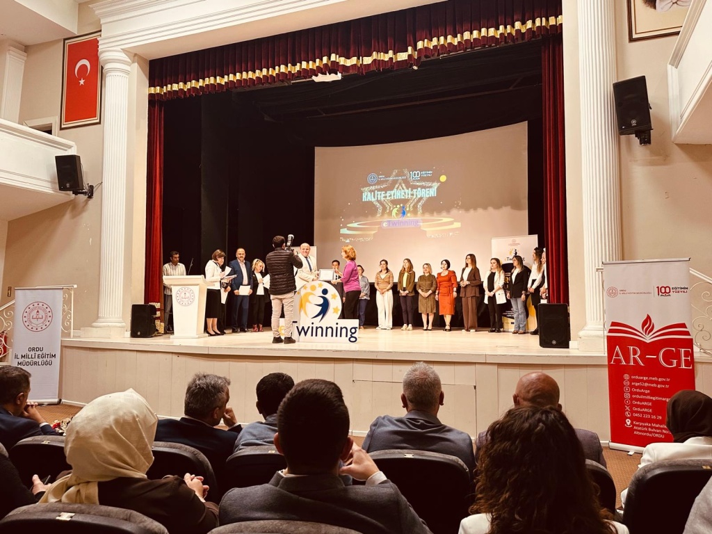 ETwinning kapsamında öğretmenlerimizin yürüttüğü "4R'S FOR NATURE" adlı proje, çevre bilincini artırmayı ve sürdürülebilir yaşam alışkanlıklarını teşvik etmeyi amaçladı. Bu anlamlı proje sayesinde okulumuzdan 8 öğretmenimiz, üstün emek ve katkılarından dolayı Avrupa ve Ulusal Kalite Etiketi Ödülü almaya hak kazandı.